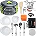 About this item EASY CLEANING & STORAGE: Entire 18 piece mess kit collapses into small bundle for easy control and storage. BUILT TO LAST! Highest Quality Non-Toxic Anodized Aluminum Camping Cookset conducts heat quickly and is survival gear that is built to last and is perfect size for 1 youth scout or adult hiker backpacker. PERFECT GIFT for FAMILY and FRIENDS: #1 Outdoor Cooking Backpacking Gear & Camping Backpack and Hiking Picnic Set for anyone looking for a high quality, great value product for the camping world or bug out bag to enjoy at the cookout with the people you love ALL-IN-ONE COOKWARE MEGA BUNDLE: The 18 Piece Camping Campfire Cookware Mess Kit includes Anodized Aluminum Nonstick Pot + Pot Cover + Nonstick Pan + 2 Bowls + Folding Stainless Steel Cutlery (Spoon, fork, butter spatula etc.) + Soup Spoon + 1 Carabiner + 1 Backpacking Stove + 1 Survival Paracord Bracelet with Compass + 1 Emergency Whistle + Wooden Spoon Spatula + Cleaning Sponge + Nylon Travel Bag Drawstring Pouch. WORRY FREE WILDERNESS: Finally enjoy the great outdoors without second guessing if you packed everything to cook and serve your next meal with the lightweight, compact, and mobile design of the Camp Kitchen Set